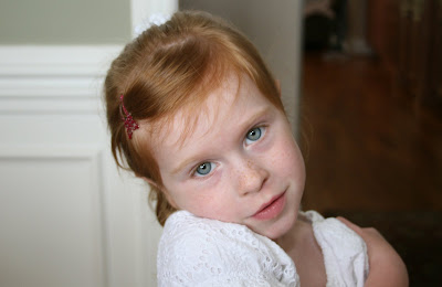 The most interseting part to me though, is her eyes. In person her eyes are a very light blue, with maybe a tinge of greenish near the pupil. But don't they look totally green in this picture?