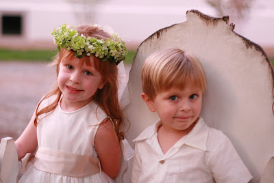 Getting ready to walk down the aisle. I think it was about 30 seconds after I snapped this shot that Jonah announced "I have to throw up!" I grabbed him and began to dash to the bathroom, but looked back and saw only two more bridesmaids before their turn to walk. I looked down and asked him again how he felt. Miraculously, he said he was ok. So, down the aisle they went.